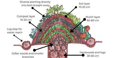 Hügelkultur is a horticultural technique where a mound constructed from decaying wood debris and other compostable biomass plant materials is later planted as a raised bed.